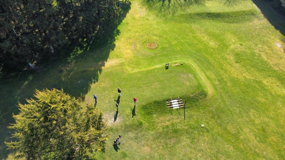 A dog leg from right to left around the big tree; big hitters can carry beyond the corner but run the risk of a tricky second shot if they come up short or left. The green is located at the top of the hill and is protected by two greenside bunkers and a sloping face to the right. A good chance of birdie with the perfect drive.